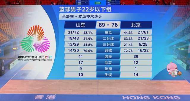 建立起来那么大的优势,到了下半场,山东队打得就有些放松了。即便如此,北京队也没有追上来。两队第三节打成27-26,第四节20-19,最终,山东U22男篮以89-76大胜北京队13分。顺利打进决赛,与东道主广东队会师。